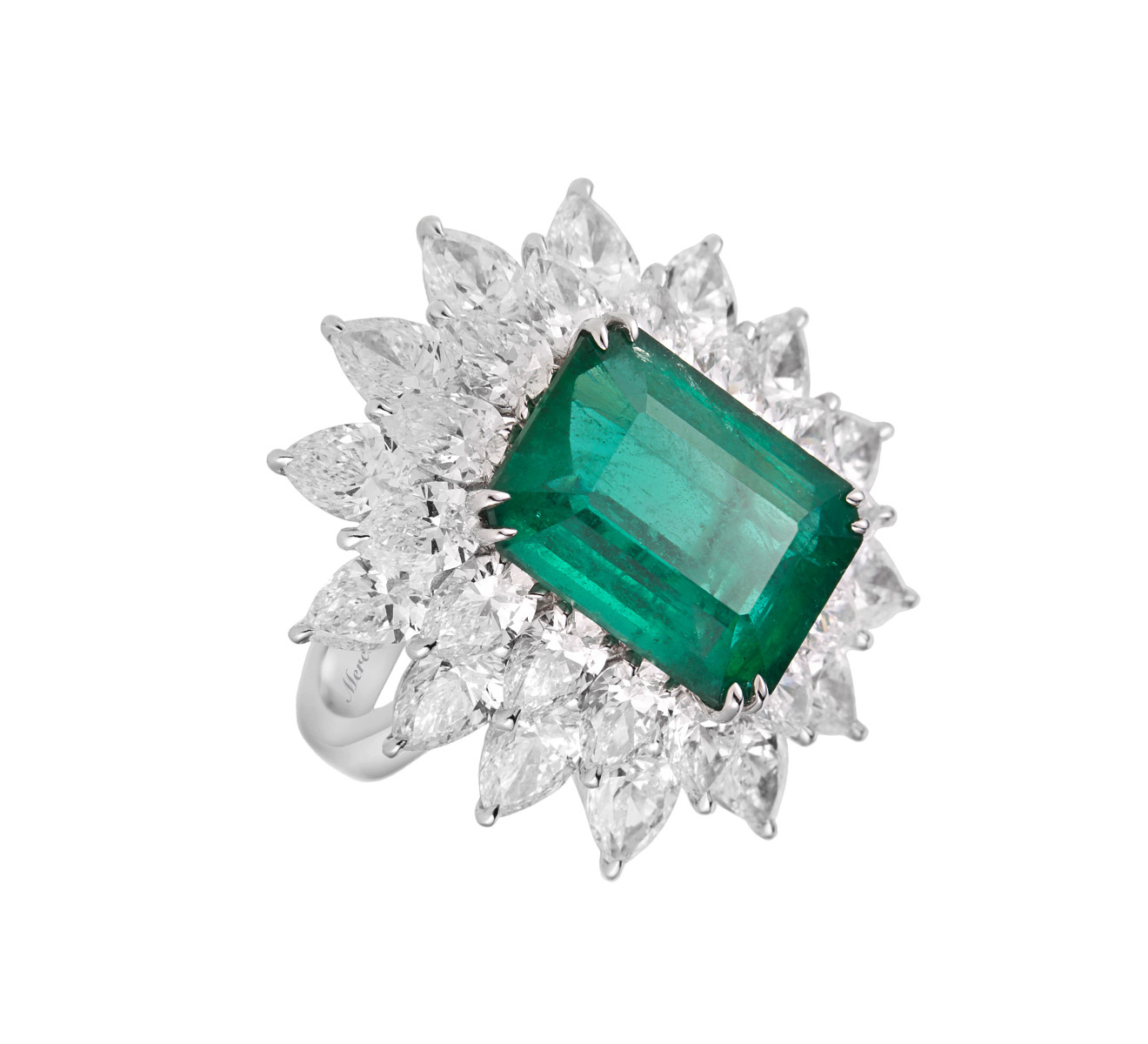 • Изумруд классической огранки, бриллианты огранки груша